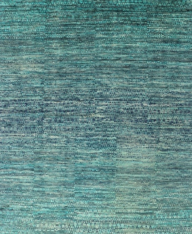 Alfombra nueva de diseño neutro con intrincados matices de colores en turquesas y azules. De rica textura. Una alfombra en que el color es protagonista para ayudar a crear ambientes únicos y entretenidos.