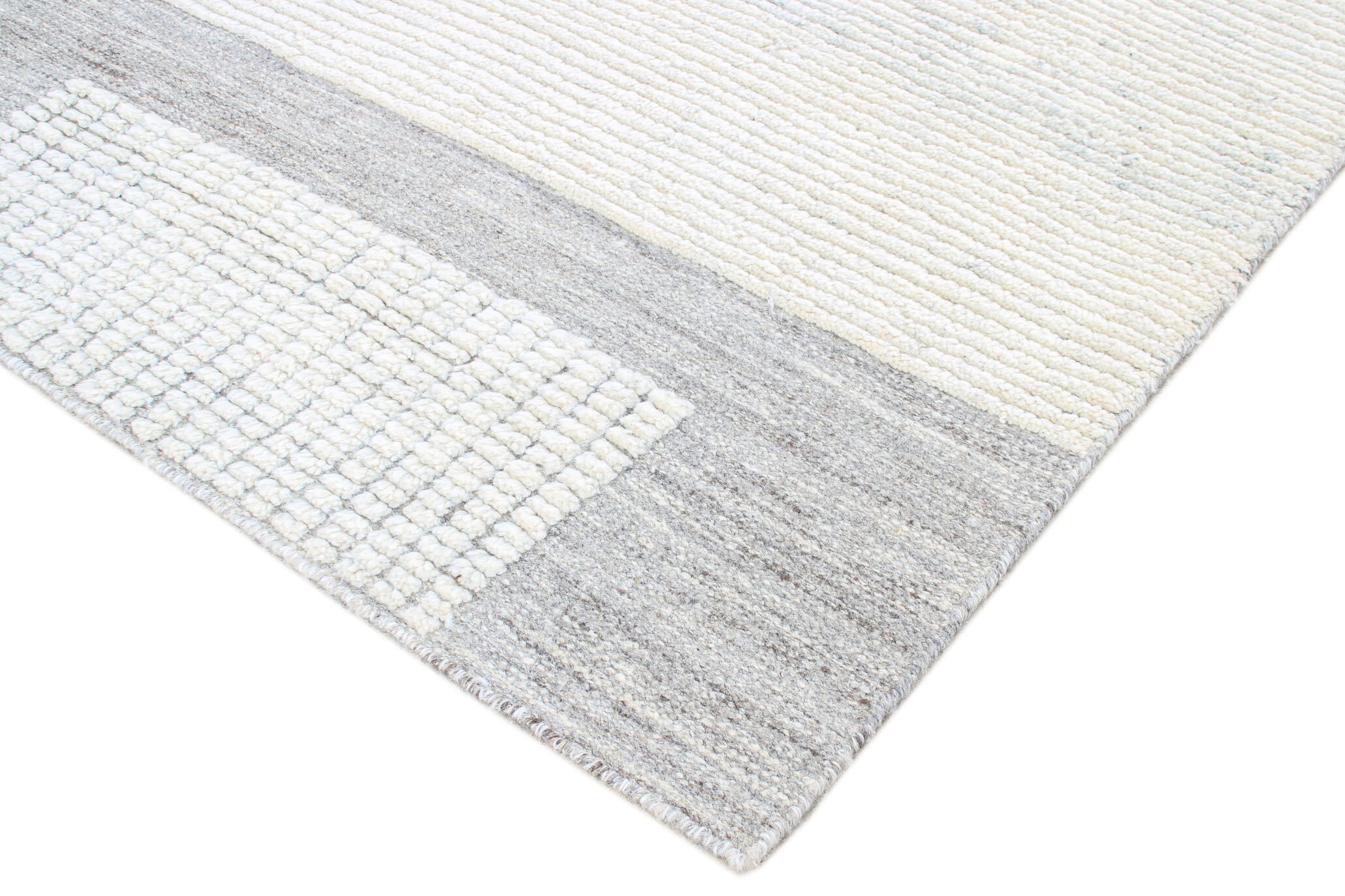 Alfombra de inspiración marroquí, la cuale mantiene sus características típicas como el tipo de nudo y el largo de hebra, pero su diseño es menos tribal y mas contemporáneo.
