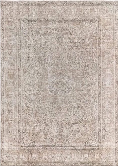 Alfombra persa de entre 30 a 60 años que se encuentra en buen estado y que ha perdido la intensidad de sus colores originales luego de sucesivos lavados y secados al sol. Esta decoloración en la alfombra da un look contemporáneo, y las marcas de desgaste son real testimonio del paso del tiempo.