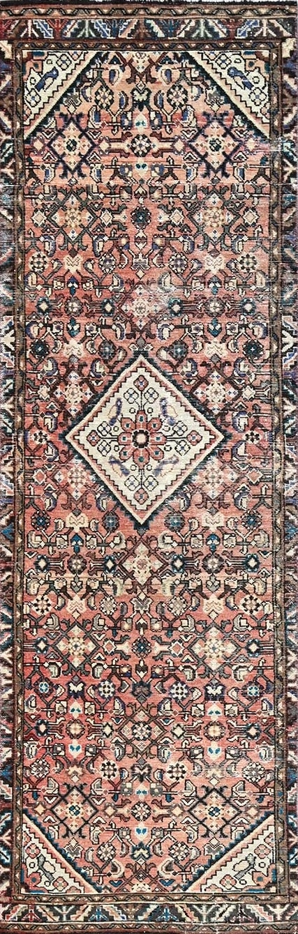 Alfombra persa de entre 30 a 60 años que se encuentra en buen estado y que ha perdido la intensidad de sus colores originales luego de sucesivos lavados y secados al sol. Esta decoloración en la alfombra da un look contemporáneo, y las marcas de desgaste son real testimonio del paso del tiempo.